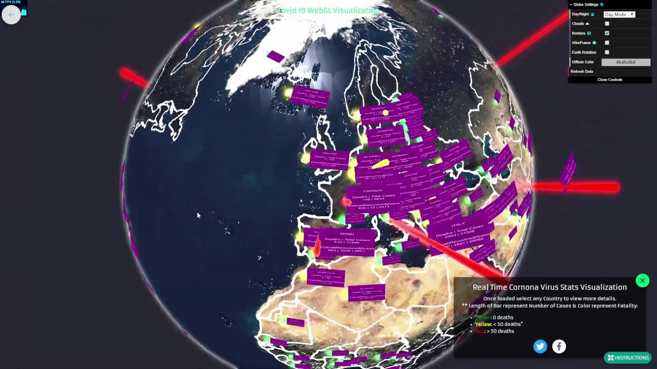 CORONA VIRUS STATS REAL TIMEVISUALIZATION: (Using real time data in a WebGl Visualization)