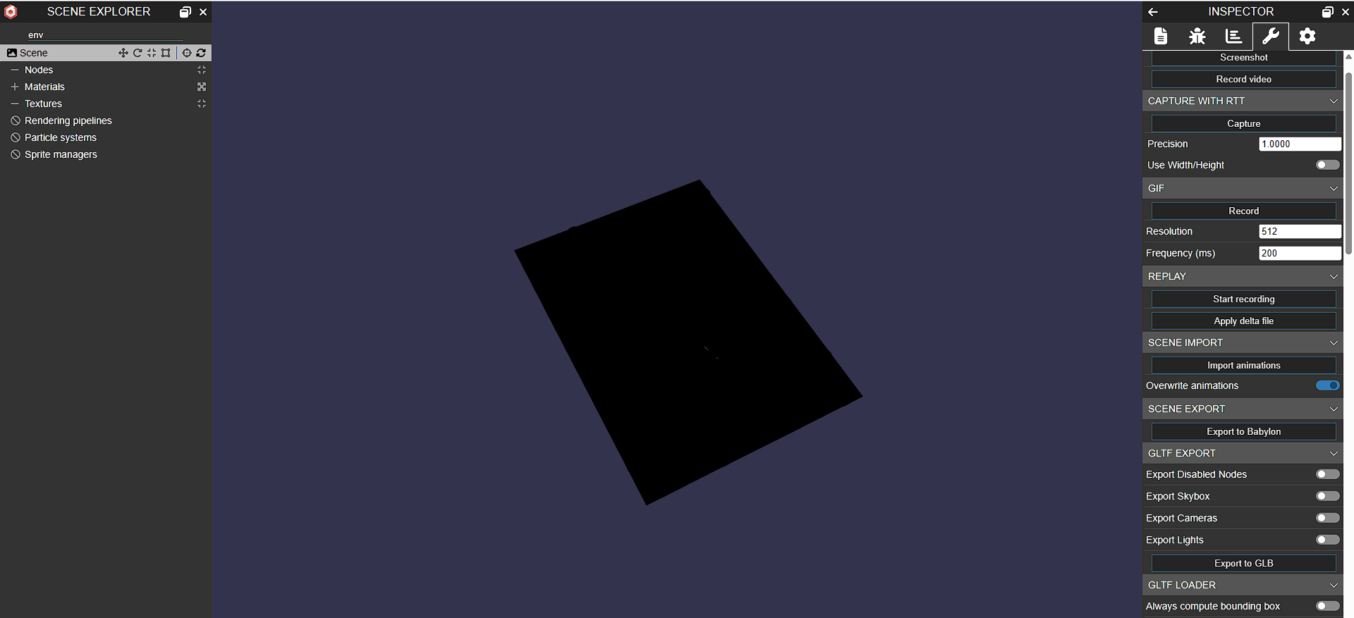 I first import the glb file into Sandbox, and then delete the skybox and env maps on the left side. The exported Babylon file does not contain anything about the environment, but when I import the Babylon file into the scene, the environment maps I have already deleted will be loaded. I am not sure where the white environment file comes from, but I have already deleted it