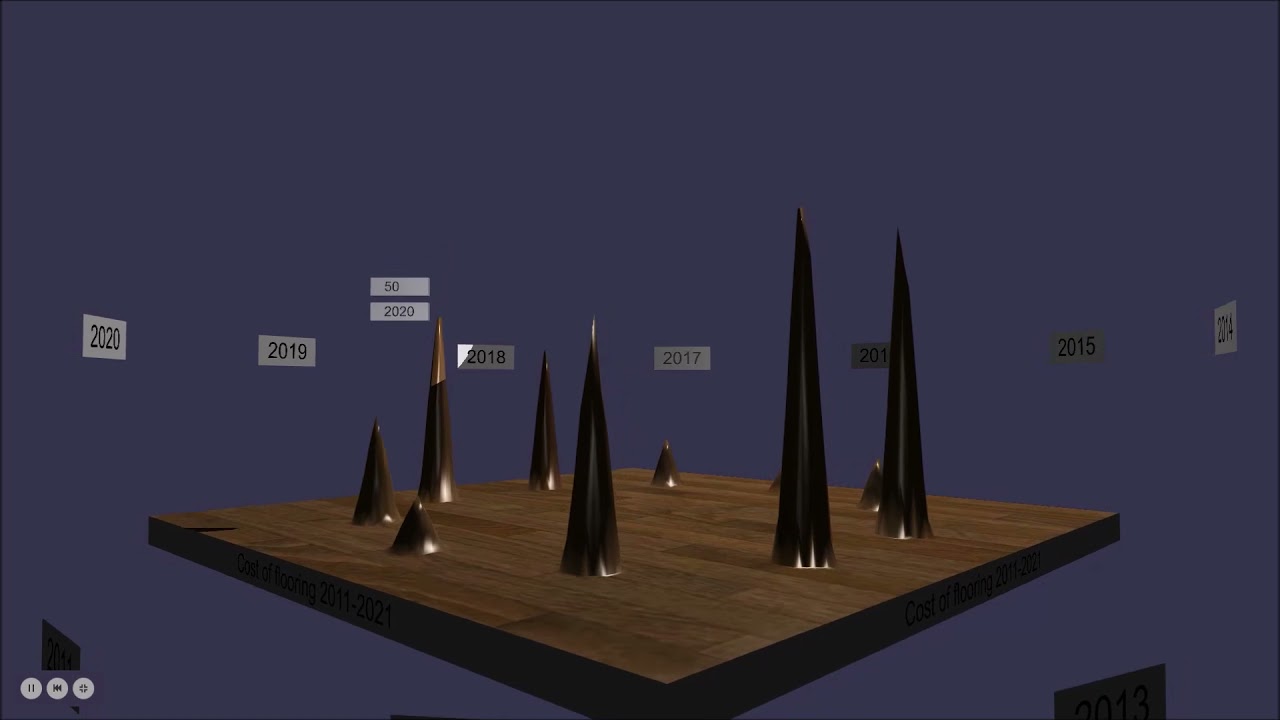 Here is another Inselbergs chart, using the features: “floor” texture, labels, value satellite, spotlight on satellite, and sync spotlight with camera. Light sources are dimmed down to enhance the spotlight effect.