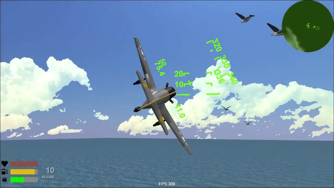 - stats UI for health, fuel and ammo (now you can run out of it. You have to refill by landing on the carrier)