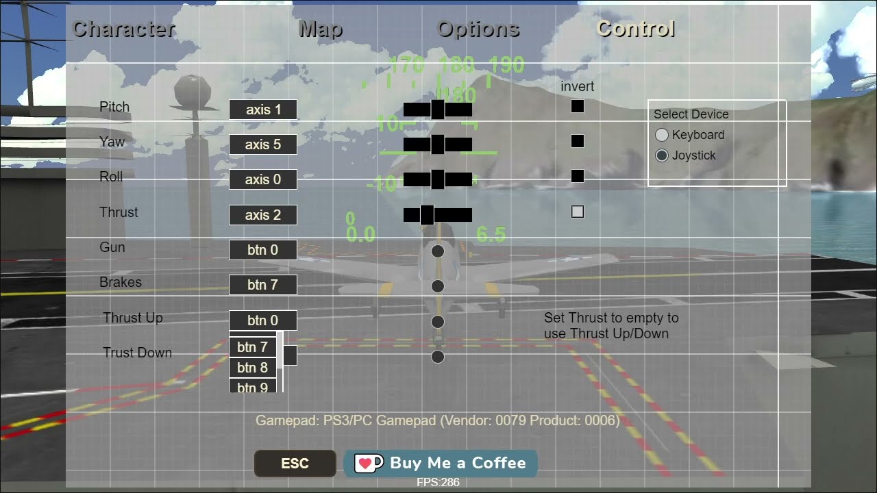 I am working on adding joystick and couple other things which are almost ready. For the joystick throttle I mapped to the throttle type axis which slides and dont return to the zero position.