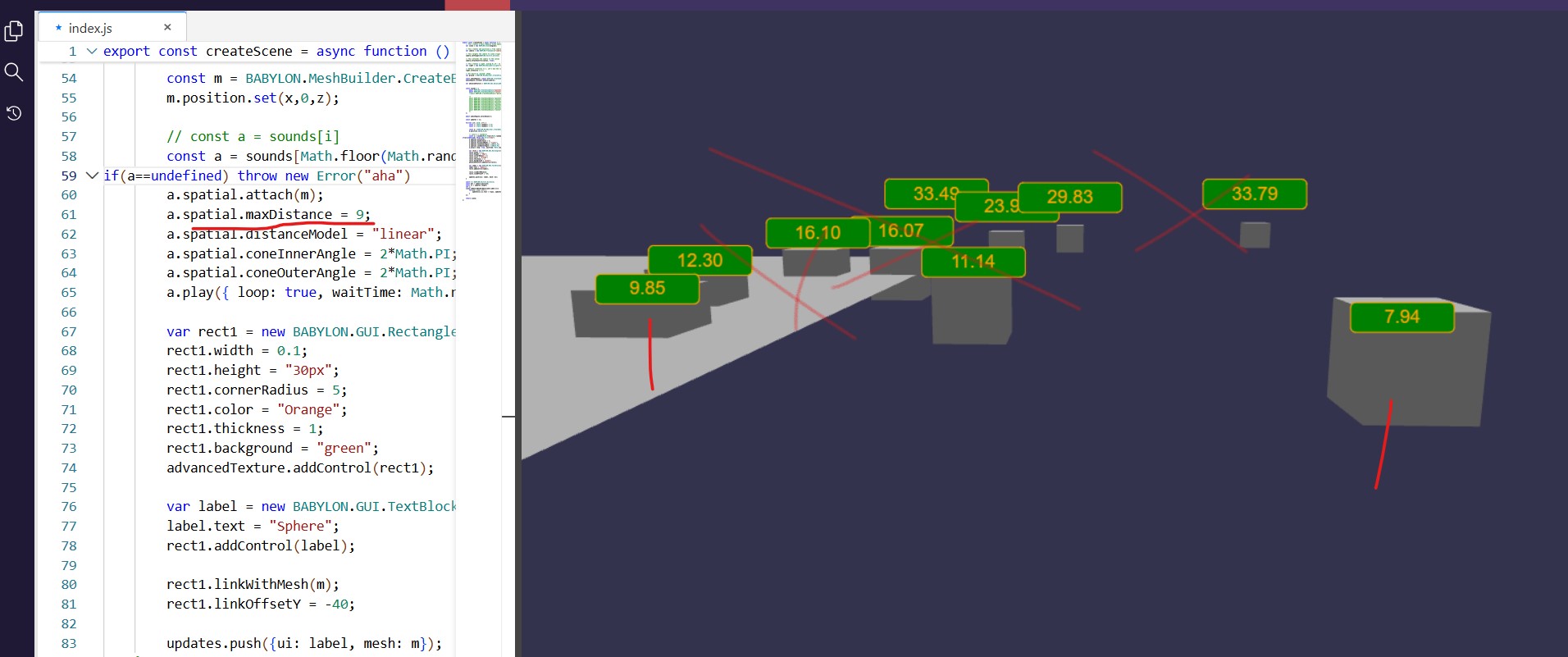 I am not too sure what’s going on there because, sometimes, I can hear more than 2 sounds. This is weird because otherwise I would have thought, since it is sound.spatial.attach(mesh), you do need to load a sound per mesh.