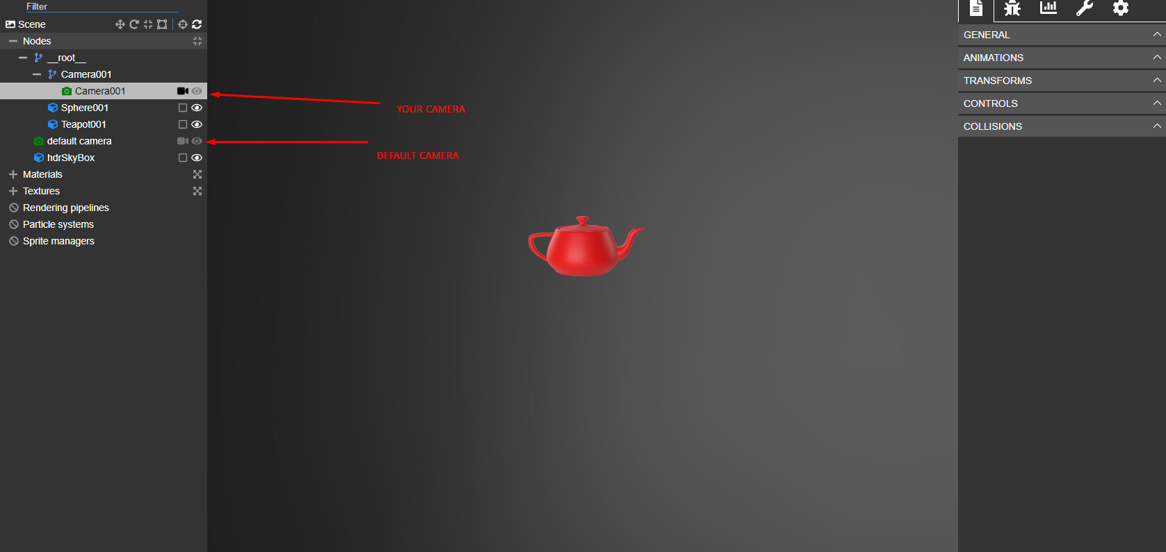 the default camara and not the scene camera is stated as activ again…even when i delete the default camera and exporting as glb it creates a new one…and in shopify i have no possibility to set the scene camera as activ…another thing is that the scene camera is not rotating through its target…it behaves as a free camera…or when i define a clear color as black and activ…disable or delete the skybox…this is also there again after exporting as a glb file…its really strange