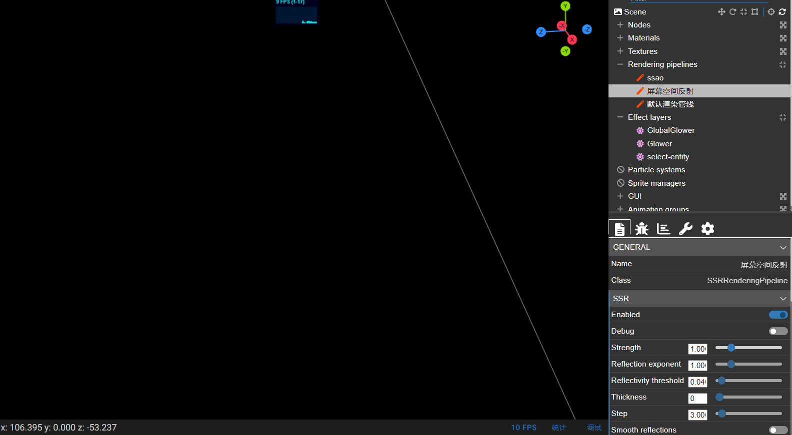 The problem is that when adding the SSR effect, new shaders have to be recompiled because we now have to write in an additional texture (the reflectivity texture) in addition to the normal/depth textures we’re already writing in (because SSAO is enabled).