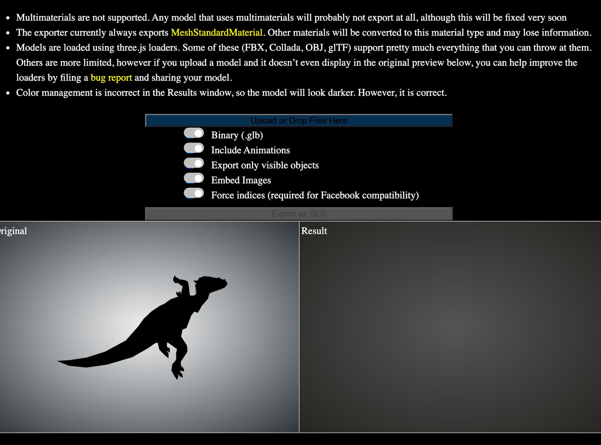 Just tried looeee/gltf-converter (which looked like exactly what I was going for!). But unfortunately, got the same result that i get when i import these models into Blendr… a very messed up model.