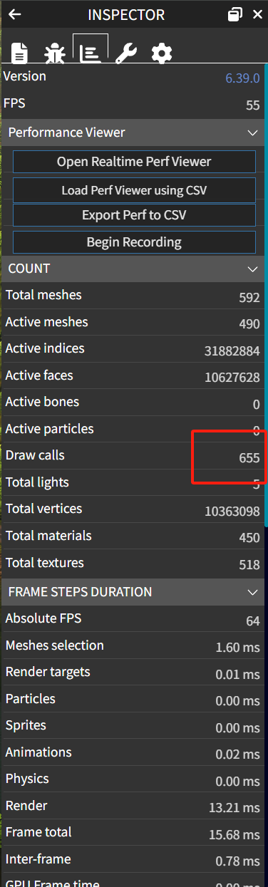 I removed the highlight layer and drawcalls is 655. Even if the highlight layer only add an mesh, It will also add the same number of drawcalls? Because I find that adding one or more mesh to the highlight layer increases the number of drawcalls by the same amount. my scene had very few meshes using the highlight layer, but it produced a surprising number of drawcalls.