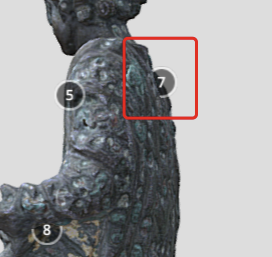 I want to hide the corresponding circular button(marked red in the picture) when the emphasized part in the model( I think is the right arm in the picture) is turned behind the screen, but I do not know how to achieve。