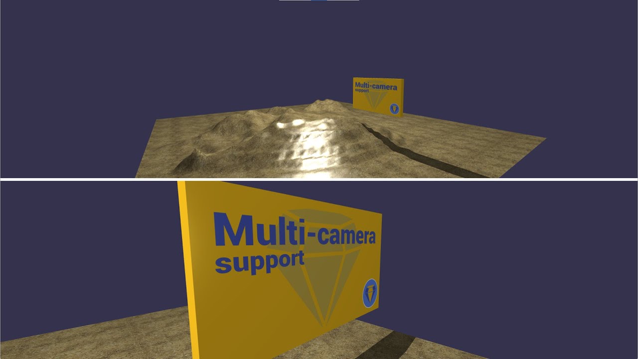 Bjorn’s 3D-decks, my presentation design tool, supports slides (scenes) with multiple cameras, aka multi-views. You can split the screen in four, two vertical or two horizontal views or alternatively use 1 to 4 picture-in-picture views. Each camera can of course be independently animated, eg. rotate around a target etc.