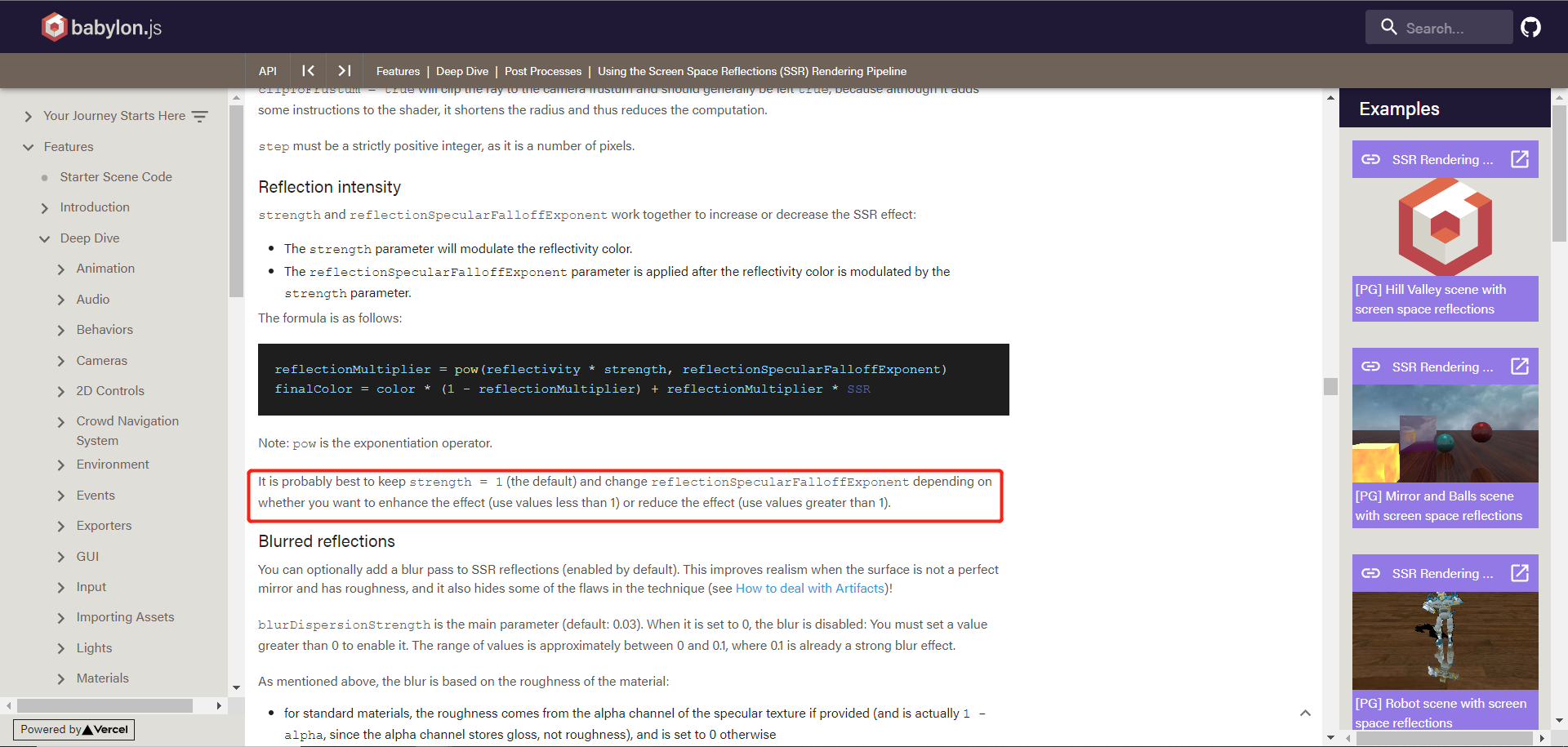 According to the formula, shouldn’t the reflection effect be enhanced when reflectionSpecularFalloffExponent is greater than 1?
