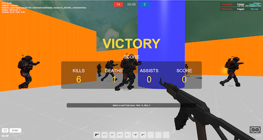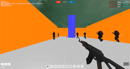 Team Deathmatch www.vrampage.com now runs team-deathmatch, it has 3 states (PRE, ACTIVE, POST).